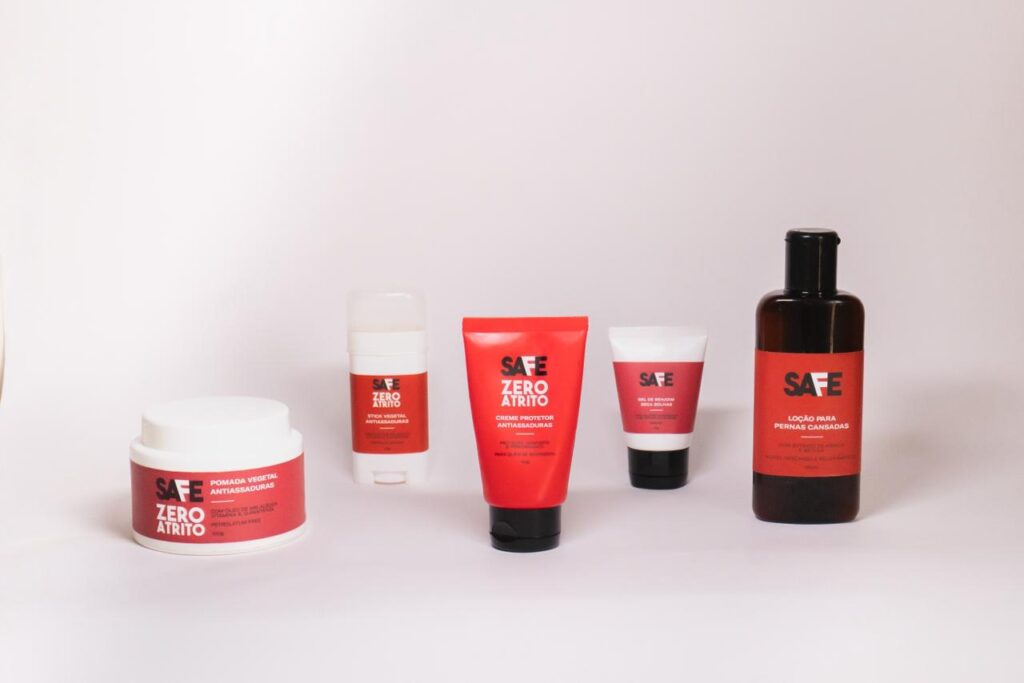 A Safe é a primeira marca de cosméticos para atletas no Brasil. Idealizada e desenvolvida por Susana, também fundadora da Bula Verdde, a linha nasceu para atender a necessidade de seu marido Pedro, maratonista que corre sem meias e sofria muito com bolhas e assaduras. O Zero Atrito, o primeiro produto da linha e nosso campeão de vendas, protege a pele do atleta contra bolhas e assaduras causadas pelo atrito de pele com pele e pele com roupa. Ao longo desses 21 anos de história, a linha cresceu, conquistou o Brasil, e promove conforto e liberdade à todas as pessoas que se movimentam.